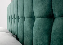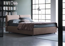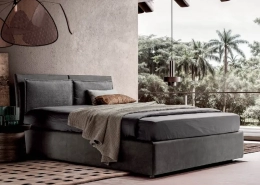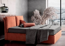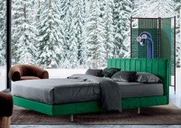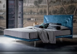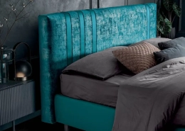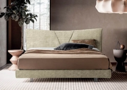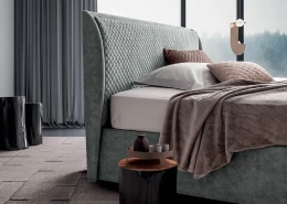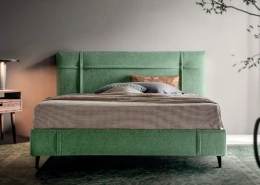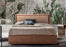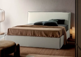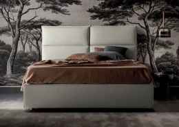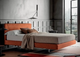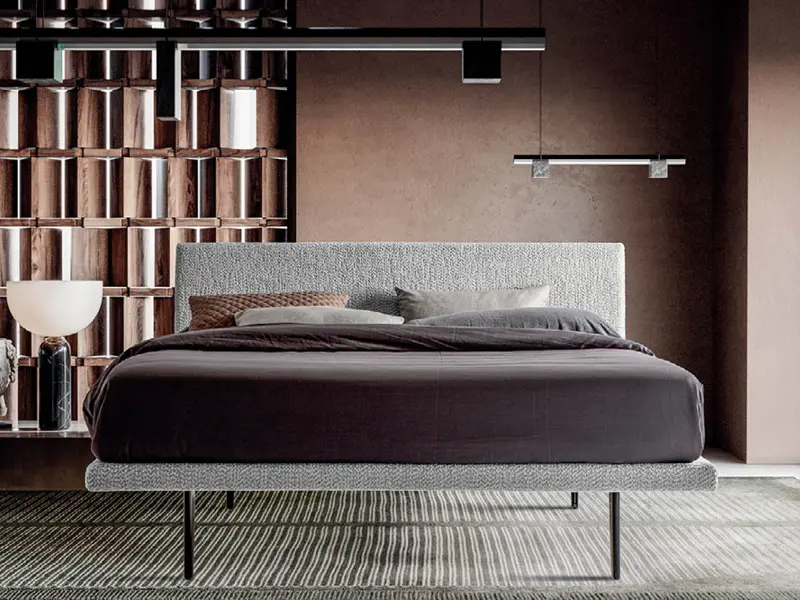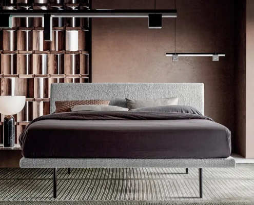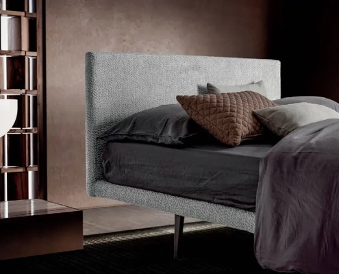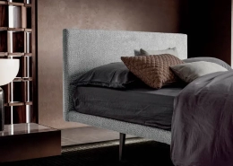 The essential design and the high foot give lightness to the bed. The low and rectangular headboard, together with the thin and minimal ring, create a visual balance that enriches the space with a clean and modern aesthetic.
